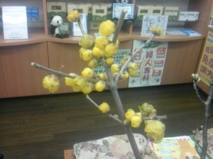 蝋梅(ろうばい)を患者さんから頂きました 先日テレビで洞慶院の蝋梅が満開って言ってましたね ↑↑↑↑↑ いい香りですよ